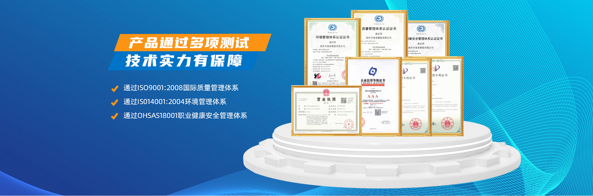 - 焦作市富泉塑膠有限公司,創立于1995年,是一家集研發(fā)、設計、生產、銷售為一體的大型管材企業。公司位于太極故里、黃河之濱一一河南焦作溫縣。公司占地128畝,現有職工210余人,其中具有中技術職稱的19人。生產、檢驗設備58臺(套),包括PVC實壁管生產線11套、PE實壁管生產線12套、HDPE雙壁波紋管生產線6套、PVC雙壁波紋管生產線5套,檢驗設備14臺(套)。主要產品有:Φ20mm-630mm、各種壓力規(guī)格的PVCU、PVC-M、PE給水管材,PVC-U節(jié)水灌溉管材,HDPE燃氣和礦用管材,DN200-800mm的HDPE、PVC雙壁波紋管及各種噴灌、滴灌工程材料。承接大中型市政供排水、飲水安全及節(jié)水灌溉等工程?! 「蝗苣z公司重視產品的質量、安全、環(huán)保和節(jié)能,在同行業中率先完成了“新華節(jié)水產品認證”,全方面通過ISO9001:2008國際質量管理體系、IS014001:2004環(huán)境管理體系和OHSAS18001職業健康安全管理體系的一體化導入,并建立起規(guī)范的現代企業管理體系。公司以“質量”為先導,采用質量跟蹤、多環(huán)節(jié)把關的方法,組建具有行業水準的企業技術檢測中心,常年委托水利部節(jié)水灌溉設備檢測中心、河南省產品質量監(jiān)督檢驗院對產品跟蹤檢測,并由中國人民保險公司承保產品質量。公司連續(xù)多年被河南省水利廳確定為“安全飲水設備、節(jié)水灌溉設備”定點生產企業,并獲得“中國名優(yōu)產品”“質量、服務、信譽AAA企業”“河南省**產品”“河南省水利企業”“河南省守合同、重信用企業”等榮譽稱號?! 「蝗苣z公司堅持“用戶為上”的服務理念,長期以來,全方面關注客戶價值,不斷提升服務水平。服務隊伍常年為客戶的產品設計、施工、安裝提供合理的方案和全程細致、周到、**、快捷的技術服務。公司自成立以來,一直堅持以人為本的宗旨,塑造企業形象,并致力于新產品的開發(fā),憑借雄厚的技術開發(fā)能力,先進的工藝制造流程,嚴格的質量管理保證體系,優(yōu)良的售后服務網絡,已成為河南省大的飲水、灌溉及排水管材設備制造商。產品暢銷全國,而且還以公司雄厚的綜合實力在業界中占據著重要的地位。